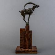 Johannes Bosma (1879-1960), bronzen beeldje: gestileerde steenbok, staand op kubistisch coromandel basement, circa 1925, 24 x 11 x 6 cm