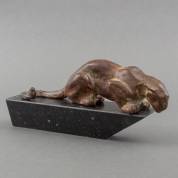 Peter Engelen (1962), bronzen beeld: panter, op natuurstenen basement, aankoop bij Stichting De KunstSalon, juni 1998, bijgevoegd: kopie aankoopbon, 13 x 28 x 7 cm