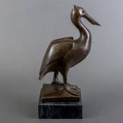 Bronzen beeld op marmeren basement: pelikaan, kopie naar François Pompon, 20e eeuw, 50 x 28 x 20 cm