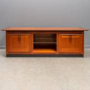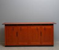 Bubingahouten dressoir met ebbenhouten biezen en aluminium ornamenten, serie Decoforma, uitvoering Schuitema -gebruikssporen-, 94 x 212 x 43 cm