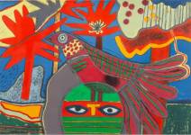 Corneille (1922-2010), gezicht met vogel, zeefdruk 5/25, r.m. gesigneerd en gedateerd '89, 49 x 64 cm