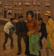 Marie Henri Mackenzie (1878-1961), figuren op straat in Amsterdam, olieverf op board, l.o. gesigneerd, 29 x 28,5 cm