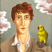 Isabelle Rozot (1962), portret van een man met parkiet op zijn schouder, olieverf op board, l.o. gemonogrammeerd en genummerd 510, 27 x 20 cm