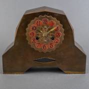 Pendule in koperen kast, Amsterdamse School, circa 1920 -wijzers vervangen, slingerveer gebroken-, 25 x 32 x 10 cm