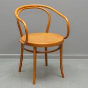 Gebogen beukenhouten stoel met rotan zitting, uitvoering Ligna, Tsjechoslowakije, 78 x 53 x 45 cm