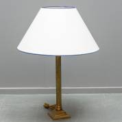 Tafellamp met zuilvormige messing voet en witte kap, 76 x Ø 55 cm