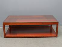 Bubingahouten salontafel met glasplaat, ebbenhouten biezen en aluminium ornamenten, serie decoforma, uitvoering Schuitema -gebruikssporen-, 44 x 145 x 75 cm