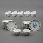 Porseleinen theeserviesgedeelte, decor 'Aquarius', uitvoering Haviland, Limoges, bestaande uit: twaalf kop-en-schotels en twaalf cakebordjes -één schotel met chip-, 5 x Ø 11,5 cm
