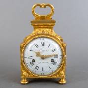 Verguld bronzen officierspendule met achtdaags uurwerk, adres: Hoguet Le Jeune, Parijs, circa 1780, herkomst: Van Brug Collection, Epe, 2017, inclusief kopie factuur, 22 x 12 x 8 cm