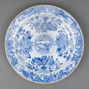 Chinees porseleinen bord met blauw-wit figurendecor, Kangxi -minieme randrestauratie-, Ø 21,5 cm