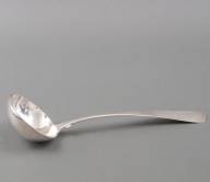 2e gehalte zilveren soepdienlepel, volgens familieoverlevering in Atjeh vervaardigd, 1845/'46, gewicht 231 gram, 31 x Ø 10 cm