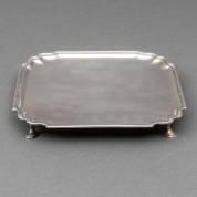 1e gehalte zilveren cabaret, staand op vier hoefvormige pootjes, meester: Gregorius van den Toorn II, 's-Gravenhage, 1750, gewicht 485 gram, 2,75 x 22,5 x 22,5 cm