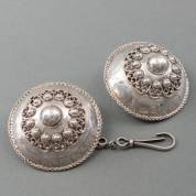 Paar 2e gehalte zilveren Zeeuwse mantelknopen, gewicht 93 gram, Ø 7 cm