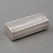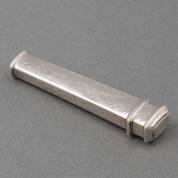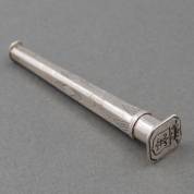 Gegraveerde zilveren naaldenkoker met schroefmechaniek, ook als cachet te gebruiken, met gegraveerd familiewapen en initialen 'GLV', onduidelijk gekeurd, Holland, 18e eeuw, gewicht 21 gram, 10 x 2 x 1,8 cm