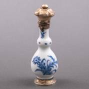 Chinees porseleinen miniatuurvaasje, 18e eeuw -hals bijgeslepen-, vermaakt tot parfumflacon met zilveren montuur en dop, met glazen binnenstopje -dop defect-