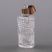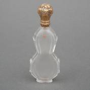 Kristallen parfumflacon met 14kt gouden dop, 19e eeuw -één gouden bolletje ontbreekt op één van de hoeken-