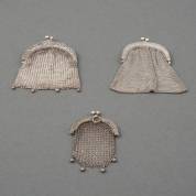 Drie 3e gehalte zilveren maliënbeursjes, gewicht 101 gram, 8 x 7 x1,5 cm