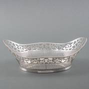 2e gehalte zilveren broodmandje met parelrand, meester: D.J. Aubert, 's-Gravenhage, 20e eeuw, gewicht 302 gram, 9 x 25 x 18,5 cm