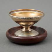 2e gehalte zilveren klein formaat pijpkomfoor, op houten basement en koperen binnenbakje, brutogewicht 147 gram, 6 x 9 x 9 cm