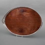 Kapitaal ovaal mahonie dienblad met opstaande 2e gehalte zilveren ajourgezaagde rand, meester: Jean Antoine Klaassen, Nijmegen, 1829, 74 x 51 x 7,5 cm