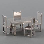 Vijf 2e gehalte zilveren miniaturen: tafel en vier stoelen, 1890, gewicht 74 gram, 3 x 5,5 x 3,5 cm