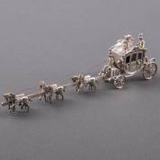 2e gehalte zilveren miniatuur: koninklijke koets met zesspan, 20e eeuw, gewicht 79 gram
