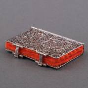 Zilveren miniatuur: filigrain boekje met klampen, 18e/19e eeuw, gevuld met rood vilt, brutogewicht 16 gram