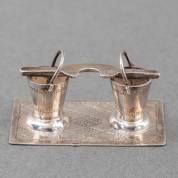 2e gehalte zilveren miniatuur: juk met emmers, 19e/20e eeuw, gewicht 12,3 gram, 2 x 2,5 4,5 cm