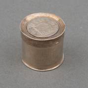 2e gehalte zilveren muntendoosje met twee Nederlandse zilveren 5-centen, 1827, gewicht 8 gram, 2 x Ø 2 cm