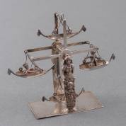 Zilveren miniatuur: schommelaar op onderplateau, meester: Arnoldus van Geffen, Amsterdam, vermoedelijk 1759, gewicht 26 gram