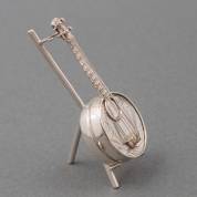 1e gehalte zilveren pillendoosje in de vorm van een banjo op standaard, gewicht 26 gram, 7,3 x 3,5 x 3,5 cm