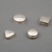 Vier 1e gehalte zilveren pillendoosjes: een ovaal, rond, driehoekig en vierkant model, 20e eeuw, gewicht 32 gram, 3 x 1,2 x 2,5 cm