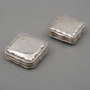 Twee 2e gehalte zilveren gecontourneerde pepermuntdoosjes met gegraveerd decor, 19e eeuw, gewicht 52 gram, 5,5 x 5,2 x 2 cm