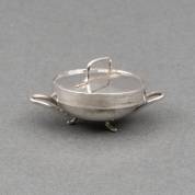 Zilveren miniatuur: pan met deksel, staande op drie pootjes, meester: Abraham van der Hoeff, Haarlem, 1705-1735, gewicht 20 gram, 5,5 x Ø 4 cm
