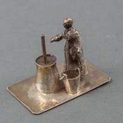 2e gehalte zilveren miniatuur: vrouw bij karnton, 1922, gewicht 20 gram, 3 x 4 x 2,5 cm