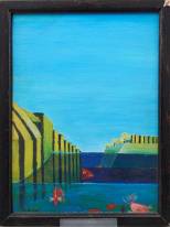 Miniatuurschilderij: vissen, olieverf op board, gesigneerd Podulke, mogelijk Michael Francis Podulke (1923-1988), 10,4 x 14,5 cm