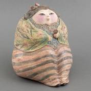 Eva Jorritsma-Thöne (1932), rond vrouwfiguur met waaier, gemonogrammeerd en gedateerd 1979, 25 x 23 x 25 cm