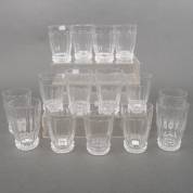 Serie van negen en serie van zes waterglazen, verschillend in grootte, ontwerp Jan Eisenloeffel, uitvoering Kristalunie Maastricht, gemerkt