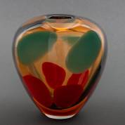 Dikwandige rode glazen vaas met rode en groene vlekken, ontwerp en uitvoering Karel Wünsch (1939), Tsjechië, gesigneerd, 22 x 21 x 14 cm