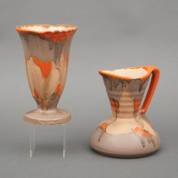 Plateel schenkkan en vaas, model 174B en 175B, uitvoering Potterie Kennemerland, Noord-Holland, 20e eeuw, 20 x Ø 13 cm