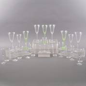 24-delig glasserviesgedeelte, model Romanda, waaronder: drie annagroene wijnglazen, vier wijnglazen en zes waterbekers, ontwerp A.D. Copier, uitvoering Glasfabriek Leerdam -randschilfers-, 18,5 x Ø 7,5 cm