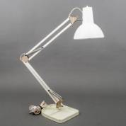 Witte metalen bureaulamp op gietijzeren voet, naar anglepoise model, uitvoering Ikea, jaren '80, 70 x 22 x 19 cm