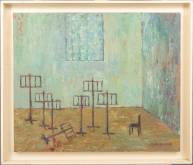 Dineke van Huizen (1963), 'Slalome', olieverf op doek, verso gesigneerd, 50 x 60 cm