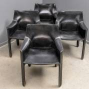 Vier stoelen bekleed met zwart tuigleer, model Cab 412, ontwerp Mario Bellini, uitvoering Cassina -lichte gebruikssporen-, 80 x 58 x 48 cm