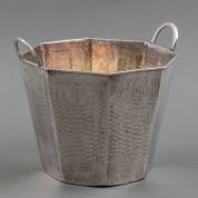 Verzilverde ijsemmer, ontwerp Renzo Cassetti -één greepje gesoldeerd maar weer los-, 24 x 24 x 24 cm