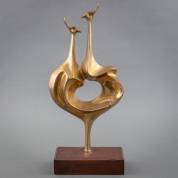 Bronzen beeld: twee geabstraheerde vogels, oorspronkelijk onderdeel van een Willy Daro beeldlamp, -kleine spatjes op oppervlak-, 51 x 20 x 15 cm