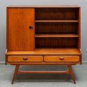 Teakhouten kastje met twee schappen, deurtje, en twee lades, ontwerp Louis van Teeffelen, uitvoering Wébé, jaren '60 -fineerschade-, 123 x 120 x 45 cm