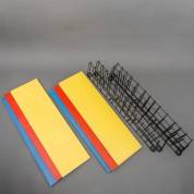 Paar metalen wandrekken, bestaande uit: twee zwarte steunen en drie plankjes in geel, rood en blauw, uitvoering Tomado, Dordrecht -gebruikssporen-