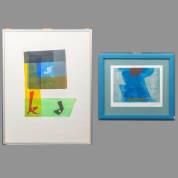 Koos van der Sluys (1920-2005), twee werken: beide abstracte composities in kleur, kleurenetsen, beide r.o. gesigneerd, 64 x 49 cm