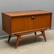 Teakgefineerd klepkastje, ontwerp Louis van Teeffelen, uitvoering Wébé -deukjes en krassen-, 58 x 85 x 40 cm